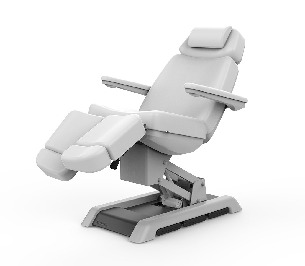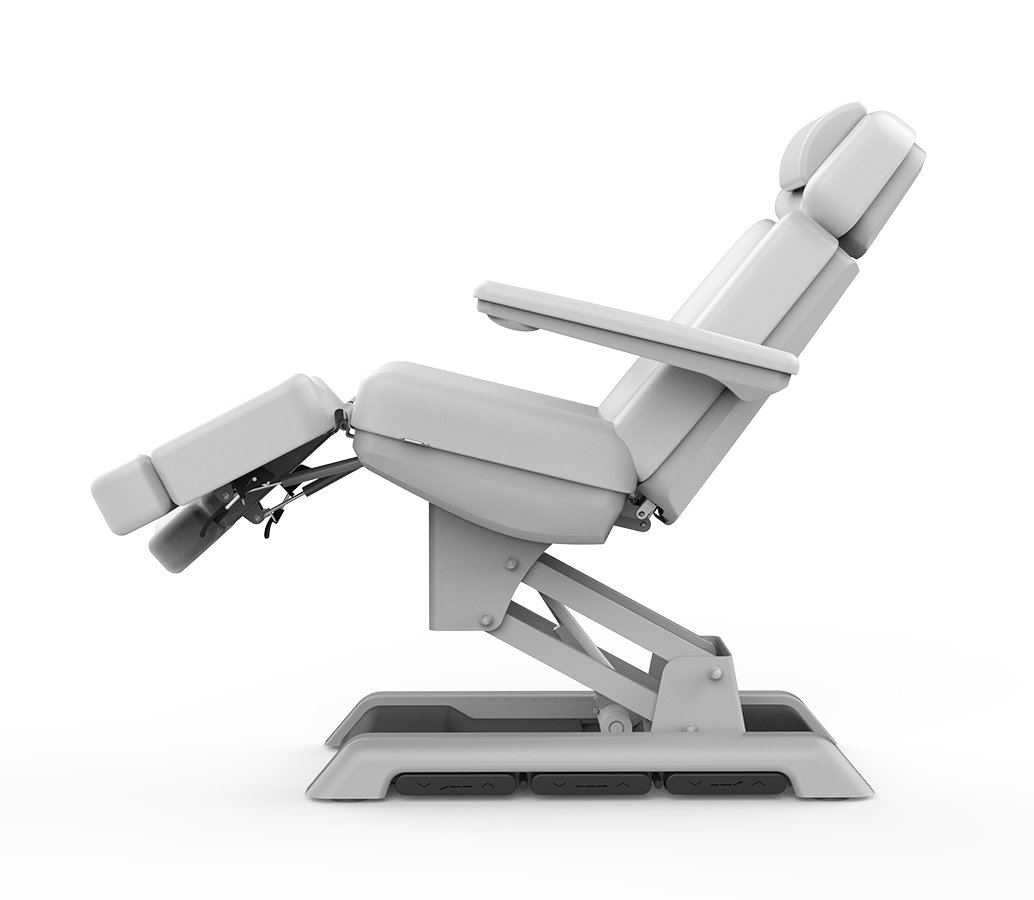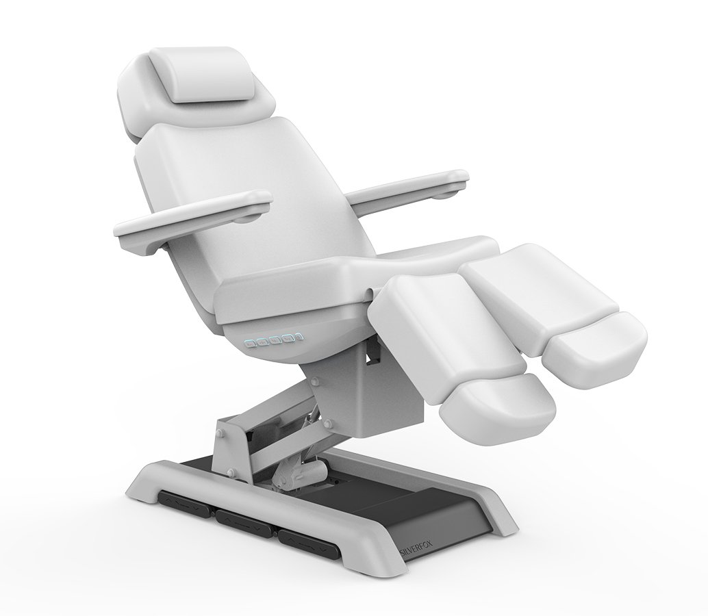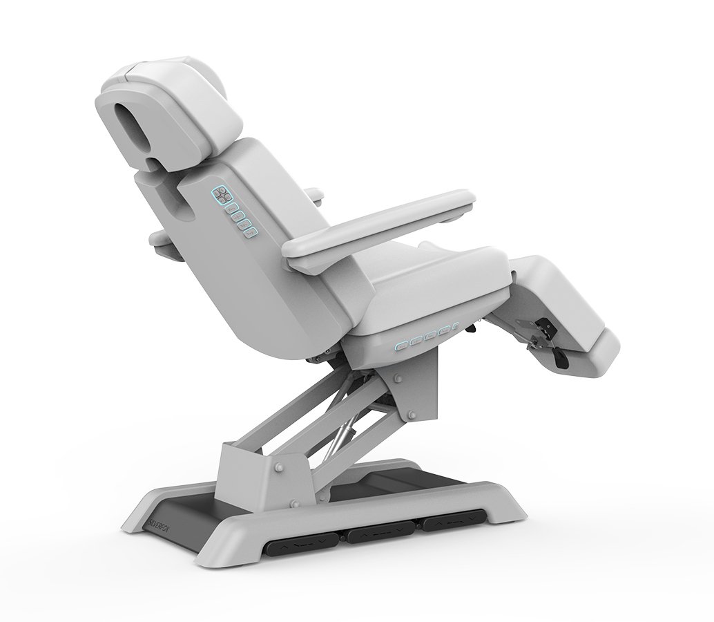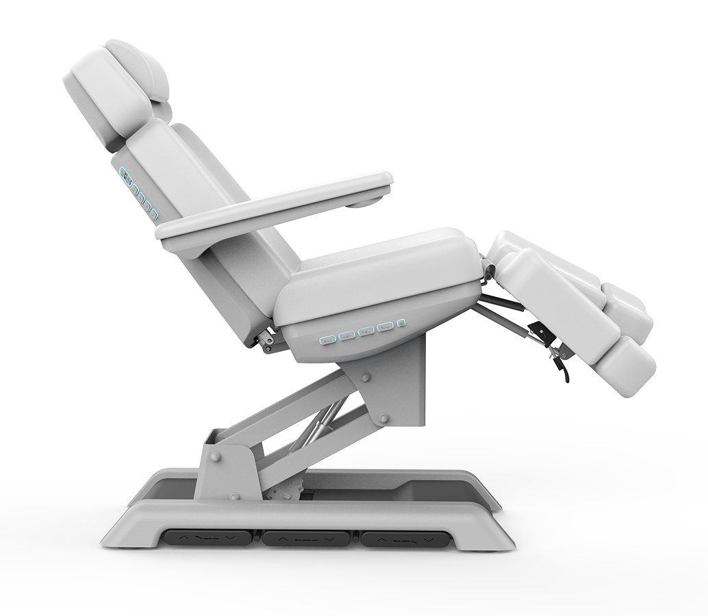 Electric podiatry chair with 3 motors and provides stable lifting adjustment through the parallelogram lifting structure.The full metal base makes it extremely heavy-duty.