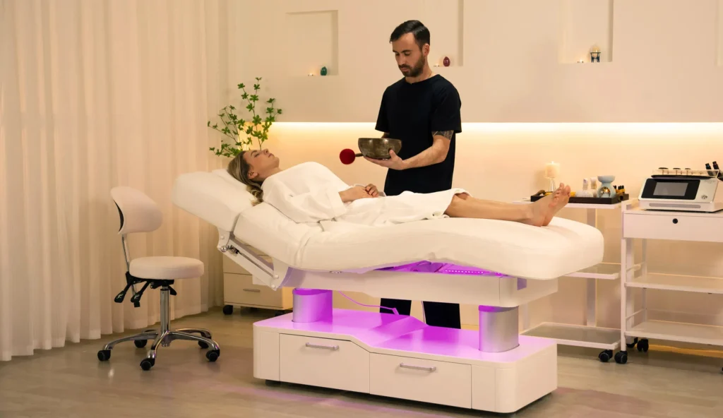 Modern light luxury log style, using a kind of wood with great vitality, combined with soft and breathable latex sponge + fluffy cotton + high-grade leather system. Create a pure sense of space, heal your mood, and help you find the long-lost comfort, tranquility, and relaxation. It is a valuable magic weapon for high-end spas, hotels, and resorts to give customers the ultimate spa experience.